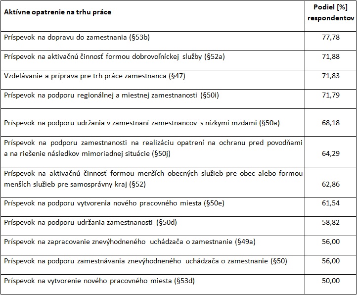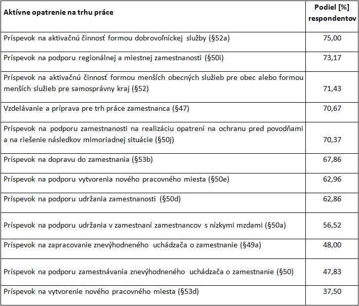 Podľa respondentov nie jej potrebné rozširovať rozsah AOTP, ale zjednodušiť ich a poskytnúť na ne vyšší objem finančných prostriedkov. Zamestnávatelia kriticky poukázali aj na uchádzačov o zamestnanie evidovaných na úradoch práce, sociálnych vecí a rodiny, ktorí nemajú predpoklady, ani záujem zaradiť sa do pracovného procesu.