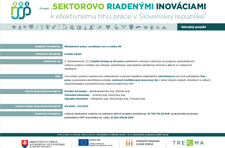 Projekt SRI reaguje na vývojové zmeny na slovenskom trhu práce, najmä potreby jednotlivých odvetví hospodárstva ovplyvnené inováciami, digitalizáciou, novými technológiami a tiež globálnymi výzvami v politickom a hospodárskom európskom a celosvetovom kontexte.