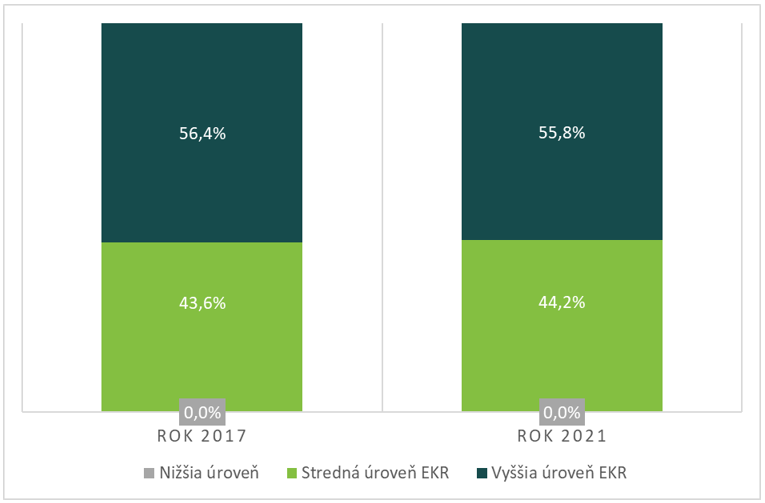 Stredná úroveň EKR bola v roku 2021 evidovaná u 44,2 % zamestnancov z daného sektora. Zamestnanci disponujúci najvyššími zručnosťami a kompetenciami, t. j. tí s vyššou úrovňou EKR, v tomto roku predstavovali cca 55,8 %-ný podiel na celkovom počte sektorovo špecifických zamestnancov.