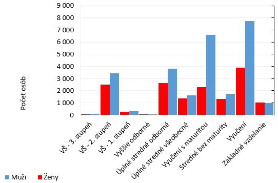 Sektor je charakteristický výrazným zastúpením mužov so stupňom vzdelania Vyučení, ktorých počet v roku 2018 dosahoval takmer 8 tisíc osôb. Vysokoškolské vzdelanie minimálne prvého stupňa má v sektore v porovnaní s celým hospodárstvom podstatne menšie zastúpenie. Z celkového počtu osôb zamestnaných v sektore v roku 2018 malo vysokoškolské vzdelanie približne 16 % osôb.