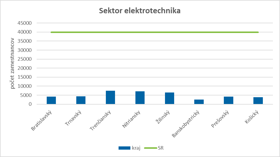 Sektor elektrotechnika bol charakteristický približne 18 %-ným (viac ako 7 500 osôb) zastúpením Nitrianskeho kraja, ako aj Trenčianskeho kraja, na celkovom počte sektorovo špecifických zamestnancov v SR. Približne 16 % sektorovo špecifických pracovných príležitostí sa využilo v Žilinskom kraji. Medzi regiónmi najnižší podiel sektorovo špecifických zamestnancov vykázal k 31. 12. 2021 Banskobystrický kraj, a to cca 6 % z úhrnného počtu sektorovo špecifických zamestnancov.
