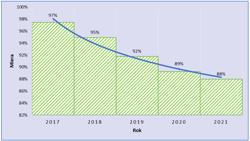 Zo všetkých ekonomických subjektov (t. j. 100 %), ktoré vznikli v sektore hutníctvo, zlievarenstvo, kováčstvo v roku 2017, ich približne 97 % pôsobilo na trhu aj ku koncu roku 2017, t. j. k 31. 12. 2017. Čiže približne 3 % ekonomických subjektov, ktoré vznikli v roku 2017, ukončilo svoju činnosť ešte do konca roku 2017 (rok 2017 bol súčasne rokom ich vzniku aj zániku). Z ekonomických subjektov, ktoré vznikli v sektore hutníctvo, zlievarenstvo, kováčstvo v roku 2017, ich naďalej aj ku koncu roku 2018, t. j. k 31. 12. 2018, pôsobilo približne 95 %. Ku koncu roku 2019 aj naďalej pôsobilo približne 92 % ekonomických subjektov, ktoré vznikli v sektore v roku 2017. Postupne miera prežitia ekonomických subjektov bola na úrovni 89 % v roku 2020 a 88 % v roku 2021. Na základe rozboru vývoja v náročnom období rokov 2017 až 2021 tak možno vyvodiť sektorovo špecifický záver, že zo 100 ekonomických subjektov vzniknutých v rámci sektora hutníctvo, zlievarenstvo, kováčstvo v roku 2017, ich 88 naďalej pôsobilo aj k 31. 12. 2021.