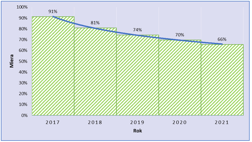 Zo všetkých ekonomických subjektov (t. j. 100 %), ktoré vznikli v sektore obchod, marketing, gastronómia a cestovný ruch v roku 2017, ich približne 91 % pôsobilo na trhu aj ku koncu roku 2017, t. j. k 31. 12. 2017. Čiže približne 9 % ekonomických subjektov, ktoré vznikli v roku 2017, ukončilo svoju činnosť ešte do konca roku 2017 (rok 2017 bol súčasne rokom ich vzniku aj zániku). Z ekonomických subjektov, ktoré vznikli v sektore obchod, marketing, gastronómia a cestovný ruch v roku 2017, ich naďalej aj ku koncu roku 2018, t. j. k 31. 12. 2018, pôsobilo približne 81 %. Ku koncu roku 2019 aj naďalej pôsobilo približne 74 % ekonomických subjektov, ktoré vznikli v sektore v roku 2017. Postupne miera prežitia ekonomických subjektov bola na úrovni 70 % v roku 2020 a 66 % v roku 2021. Na základe rozboru vývoja v náročnom období rokov 2017 až 2021 tak možno vyvodiť sektorovo špecifický záver, že zo 100 ekonomických subjektov vzniknutých v rámci sektora obchod, marketing, gastronómia a cestovný ruch v roku 2017, ich 66 naďalej pôsobilo aj k 31. 12. 2021.