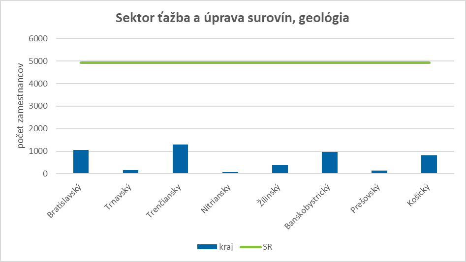 Regionálna alokácia sektorovo špecifických zamestnancov v členení podľa krajov SR v rámci sektora ťažba a úprava surovín, geológia k 31. 12. 2021