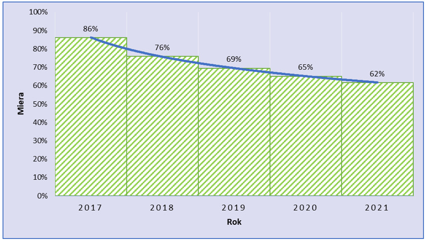 Zo všetkých ekonomických subjektov (t. j. 100 %), ktoré vznikli v sektore remeslá a osobné služby v roku 2017, ich približne 86 % pôsobilo na trhu aj ku koncu roku 2017, t. j. k 31. 12. 2017. Čiže približne 14 % ekonomických subjektov, ktoré vznikli v roku 2017, ukončilo svoju činnosť ešte do konca roku 2017 (rok 2017 bol súčasne rokom ich vzniku aj zániku). Z ekonomických subjektov, ktoré vznikli v sektore remeslá a osobné služby v roku 2017, ich naďalej aj ku koncu roku 2018, t. j. k 31. 12. 2018, pôsobilo približne 76 %. Ku koncu roku 2019 aj naďalej pôsobilo približne 69 % ekonomických subjektov, ktoré vznikli v sektore v roku 2017. Postupne miera prežitia ekonomických subjektov bola na úrovni 65 % v roku 2020 a 62 % v roku 2021. Na základe rozboru vývoja v náročnom období rokov 2017 až 2021 tak možno vyvodiť sektorovo špecifický záver, že zo 100 ekonomických subjektov vzniknutých v rámci sektora remeslá a osobné služby v roku 2017, ich 62 naďalej pôsobilo aj k 31. 12. 2021.
