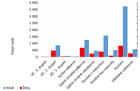 Sektor je charakteristický dominantným zastúpením mužov so stupňom vzdelania Vyučení, ktorých počet v roku 2018 predstavoval približne 3,7 tisíc osôb. Vysokoškolské vzdelanie minimálne prvého stupňa má v sektore v porovnaní s celým hospodárstvom podstatne menšie zastúpenie. Z celkového počtu osôb zamestnaných v sektore v roku 2018 malo vysokoškolské vzdelanie približne 12 % osôb.