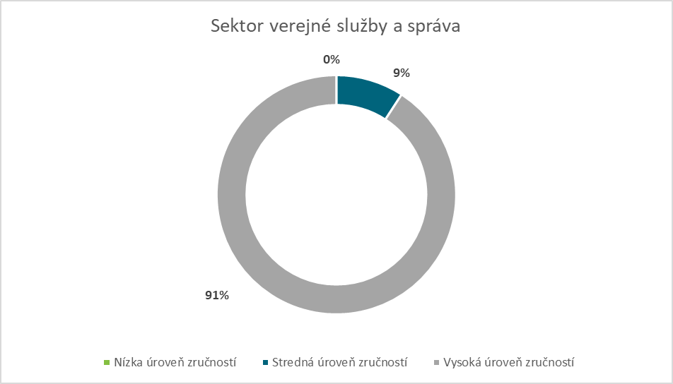 Na nízkej úrovni zručností sa nenachádzali nijakí zamestnanci, resp. UoZ s praxou v zamestnaniach garantovaných Sektorovou radou pre verejné služby a správu.