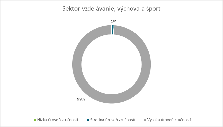 Na nízkej úrovni zručností sa nenachádzali nijakí zamestnanci, resp. UoZ s praxou v zamestnaniach garantovaných Sektorovou radou pre vzdelávanie, výchovu a šport.