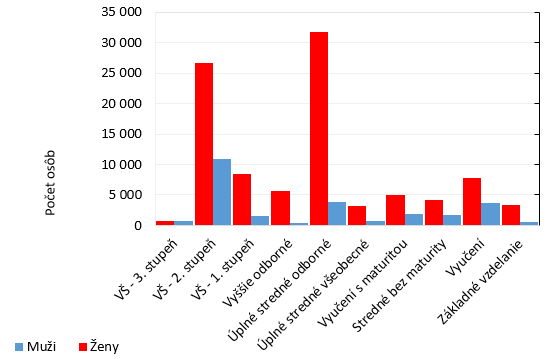 Sektor zdravotníctvo, sociálne služby je v porovnaní s celým národným hospodárstvom charakteristický najmä výrazným zastúpením žien a celkovo vyššou kvalifikačnou úrovňou ľudských zdrojov. Špecifikom sektora je, vzhľadom na kvalifikačné požiadavky výkonu zdravotníckych zamestnaní, relatívne vysoký podiel zamestnaných osôb (najmä žien) s úplným stredným odborným vzdelaním, ako aj s vysokoškolským vzdelaním prvého stupňa. Z celkového počtu osôb zamestnaných v sektore v roku 2018 malo vysokoškolskú kvalifikáciu minimálne prvého stupňa približne 40 % osôb.