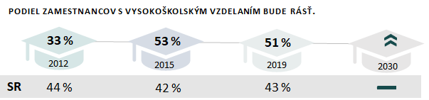 Podiel zamestnancov s vysokoškolským vzdelaním v sektore Administratíva, ekonomika, manažment