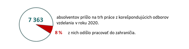 V roku 2020 prišlo na trh práce 7,4 tisíc absolventov z korešpondujúcich odborov vzdelania k sektorovým zamestnaniam a 8 % z nich odišlo za prácou do zahraničia.