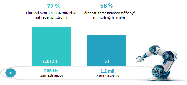 Približne 58 % zamestnancov v sektore vykonáva prácu, ktorú možno charakterizovať vysokým potenciálom automatizácie. V porovnaní s ostatnými sektormi a s celonárodným podielom (49 %), ide o priemerný podiel.