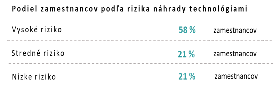 Podiel zamestnancov v sektore Administratíva, ekonomika, manažment podľa rizika náhrady technológiami