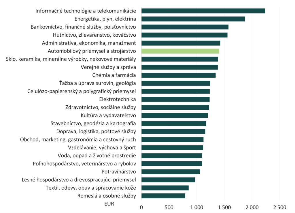 V SR zamestnanci v sektore automobilový priemysel a strojárstvo zarábajú za hodinu v priemere 8,3 EUR, čo je o 92 % menej ako je priemer európskych krajín. Najvyššie hodinové mzdy v tomto sektore majú zamestnanci v Belgicku a v Taliansku, kde zarábajú v priemere o 200,9 EUR, resp. o 54,7 EUR viac ako v SR. Naopak, priemerné hodinové mzdy v Grécku prestavujú len 58 % našich priemerných hodinových miezd (Graf č. 10).
