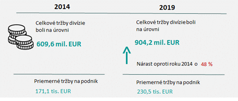 Divízia zároveň zažila medzi rokmi 2010 až 2019 výrazný nárast priemernej hrubej mesačnej mzdy, keď za 9 rokov došlo k rastu až o 89 %. Súčasná priemerná hrubá mesačná mzda v divízii je na úrovni 1377 EUR, čo je o 9 percent vyššia priemerná mzda ako je priemer ekonomiky SR.
