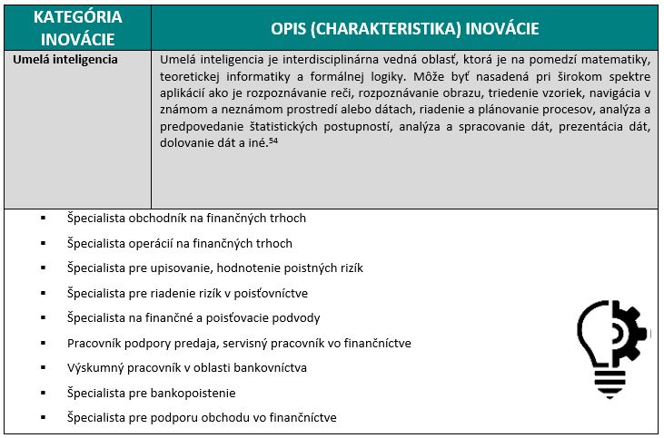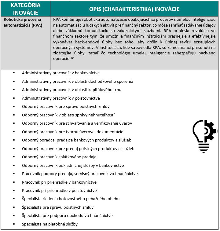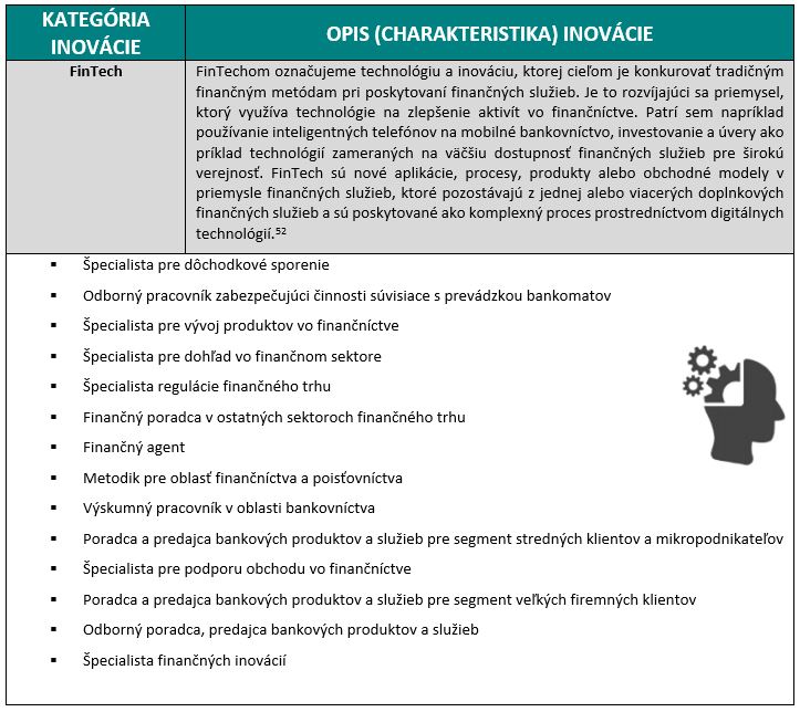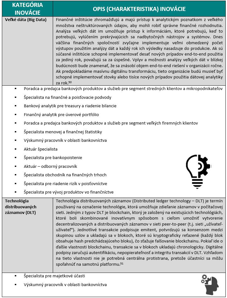 Z hľadiska priameho dosahu na pozície v sektore Bankovníctvo, finančné služby a poisťovníctvo majú tieto inovácie vplyv na širokú škálu zamestnaní. Nie každá inovácia ale zasiahne sektor v rovnakej miere.