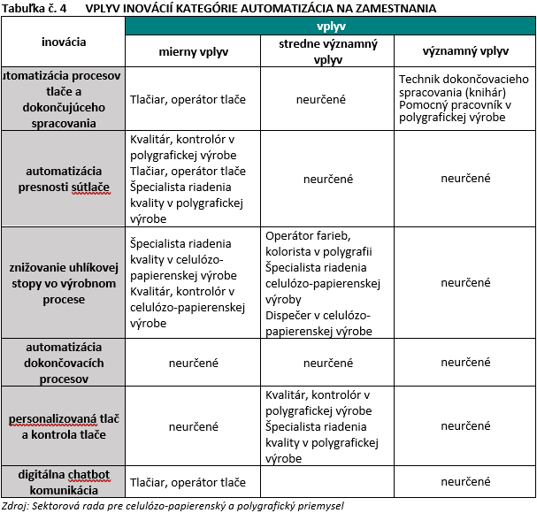 Odborné vedomosti a zručnosti potrebné pre výkon zamestnania vplyvom inovácií z oblasti automatizácie