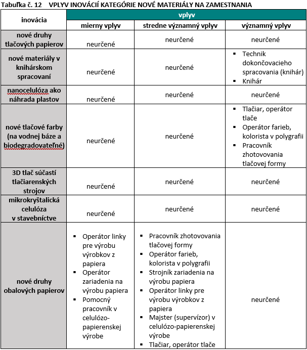 Odborné vedomosti a zručnosti potrebné pre výkon zamestnania vplyvom inovácií z oblasti nových materiálov