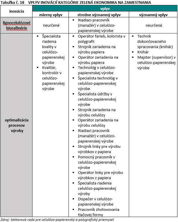 Odborné vedomosti a zručnosti potrebné pre výkon zamestnania vplyvom inovácií z oblasti zelenej ekonomiky