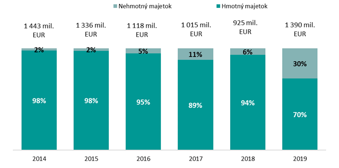 V roku 2019 investovali podniky v sektore o 5,9 % menej ako pred piatimi rokmi. Na jedného zamestnanca pripadali investície vo výške 75,6 tis. EUR, čo je 8-krát viac ako na národnej úrovni. Sektor tak má nadpriemernú dynamiku investičnej aktivity. Investície v sektore tvoria 7 % investičnej aktivity v SR. Do hmotného majetku smeruje až 70 % investícií. Hlavnou investičnou položkou sú stavby, ktoré tvoria 76 % celkových investícií.