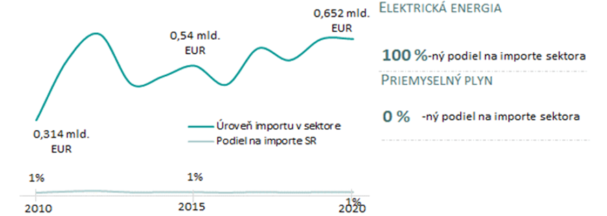 Sektor energetika, plyn, elektrina má pasívne saldo obchodnej bilancie, to znamená, že vyvážame o 17 % menej produktov sektora ako dovážame. Podiel vývozu sektora na celkovom vývoze zo SR predstavuje 0,7 %. Dovoz produktov sektora predstavuje 0,8 % z celkového dovozu v SR a tento podiel rastie. Sektor patrí medzi 11 sektorov s najvyšším vývozom a 12 sektorov s najvyšším dovozom v SR.