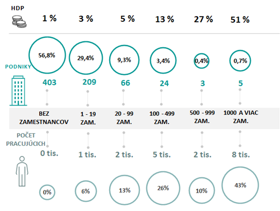 Štruktúra podnikov v sektore podľa tvorby HDP a počtu zamestnancov