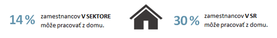 V sektore povaha práce umožňuje pracovať z domu približne 14 %-ám zamestnancov. V porovnaní s celonárodným podielom ide o pomerne nízky podiel. Z hľadiska sektorových zamestnaní je tento podiel nižší, na úrovni 5 %.