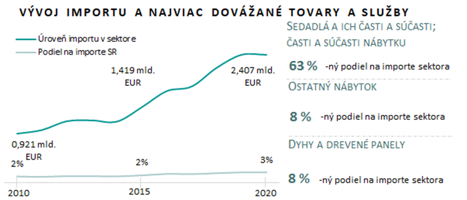 Štruktúra dovozu podľa divízií patriacich do tohto sektora je nasledovná: 2 Lesníctvo a ťažba dreva (4,1 %), 16 Spracovanie dreva a výroba výrobkov z dreva a korku okrem nábytku; výroba predmetov zo slamy a prúteného materiálu (21,4 %), 31 Výroba nábytku (74,4 %).