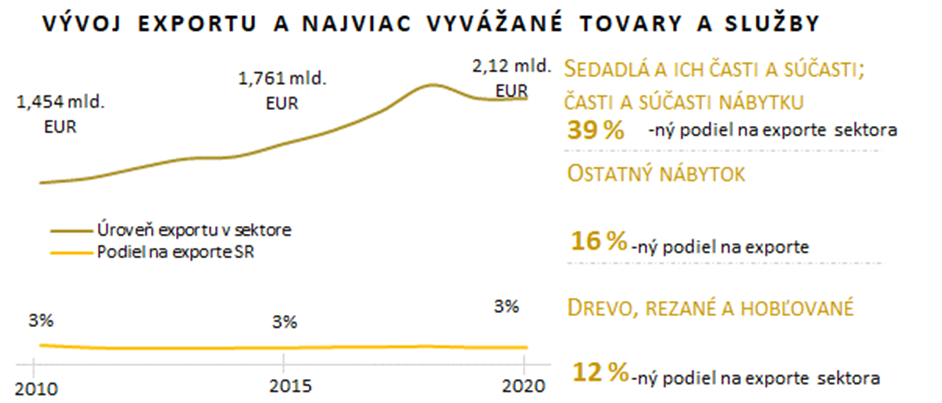 Štruktúra vývozu podľa divízií patriacich do tohto sektora je nasledovná: 2 Lesníctvo a ťažba dreva (6,4 %), 16 Spracovanie dreva a výroba výrobkov z dreva a korku okrem nábytku; výroba predmetov zo slamy a prúteného materiálu (36,1 %), 31 Výroba nábytku (57,4 %).
