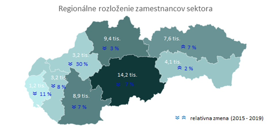 [1] Vyjadruje celkový počet pracujúcich podľa ESA2010. Rozdelenie do kategórií je realizované na základe registra organizácii a metodiky TREXIMA Bratislava