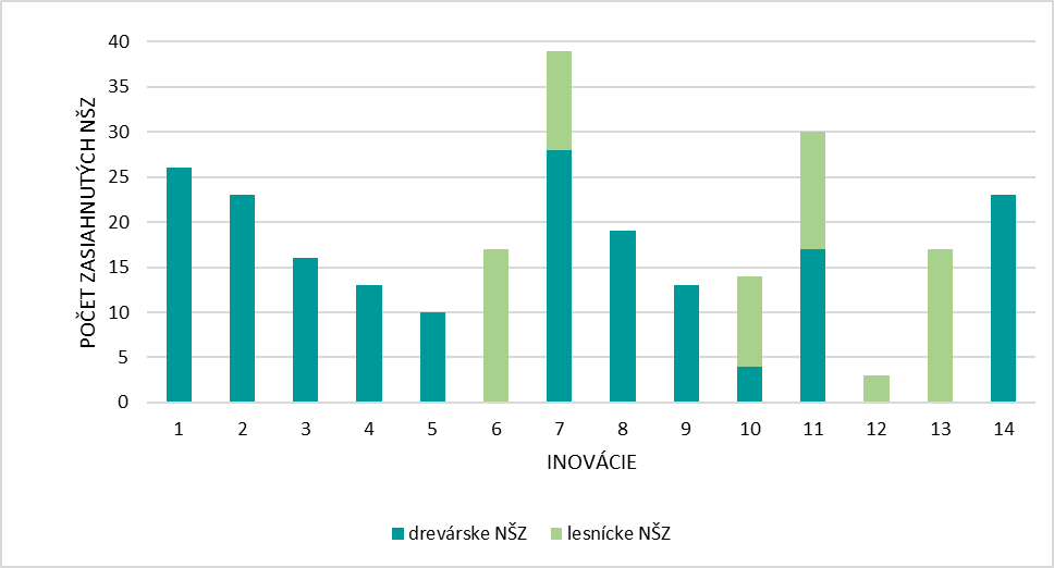 Počet NŠZ lesného hospodárstva zasiahnutých inováciami podľa pridelených kategórií