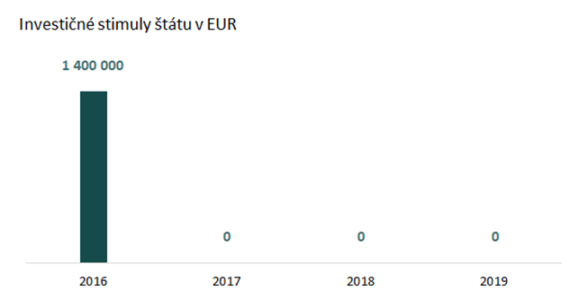 V roku 2016 poskytol štát sektoru potravinárstvo investičnú pomoc na podporu konkurencieschopnosti a rozvoja vo výške 1,4 mil. EUR. Sektor patrí medzi sektory s najnižšími investičnými stimulmi.