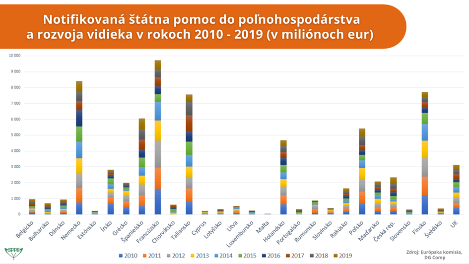 Notifikovaná štátna pomoc do poľnohospodárstva a rozvoja vidieka v rokoch 2010 – 2019