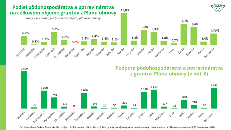 Plán obnovy a odolnosti Slovenskej republiky, bohužiaľ, vôbec nepočíta so žiadnou podporou potravinárstva ani poľnohospodárstva, napriek tomu, že iné krajiny vyčlenili z tohto balíka pre sektor nemalé finančné prostriedky.