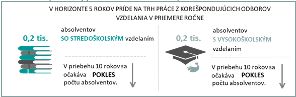 V období rokov 2021 – 2025 príde na trh práce 1 900 absolventov stredných a vysokých škôl, ktorí ukončia štúdium v niektorom z korešpondujúcich odborov vhodných pre výkon zamestnaní v tomto sektore a nebudú pokračovať v štúdiu. Približne 59 % z prichádzajúcich absolventov budú tvoriť absolventi stredných škôl, podiel absolventov vysokých škôl bude na úrovni 41 %. V dlhšom horizonte, v nasledujúcich 10 rokoch, sa očakáva pokles počtu vysokoškolských absolventov.