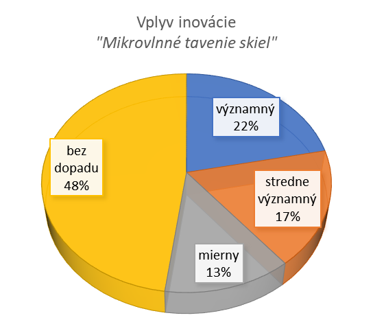Zhrnutie: Zavádzaním tejto inovácie do výrobného procesu v rámci sklárskeho priemyslu sa z celkového počtu 23 zamestnaní predpokladá zmena v rámci odborných spôsobilostí pri 11-tich zamestnaniach a 12 zamestnaní inovácia neovplyvní.