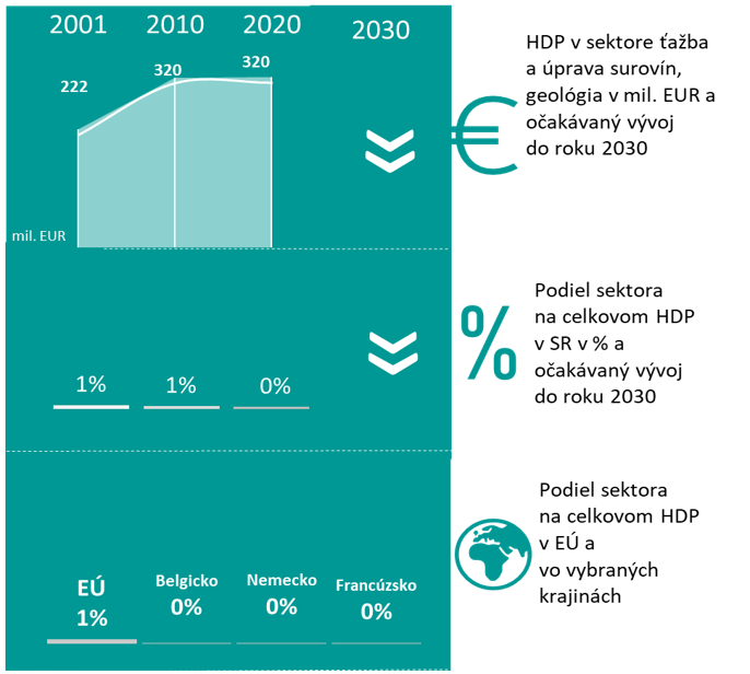 Pre túto časť štúdie je sektor ťažba a úprava surovín, geológia definovaný podľa prevažujúcej ekonomickej činnosti a sú do neho zahrnuté podniky pôsobiace v divíziách SK NACE Rev. 2: