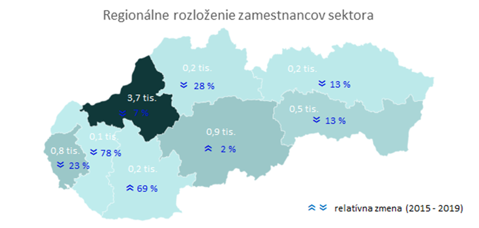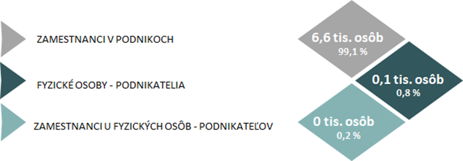 Z celkového počtu 7 tisíc pracujúcich v sektore tvoria 99 % zamestnanci v podnikoch a 1 % tvoria fyzické osoby – podnikatelia. V SR fyzické osoby – podnikatelia tvoria 13 % pracovnej sily. Sektor patrí medzi 13 % sektorov s najnižším podielom FO – podnikateľov na celkovom počte pracujúcich.
