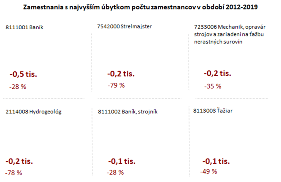 Zamestnania s najvyšším úbytkom počtu zamestnancov