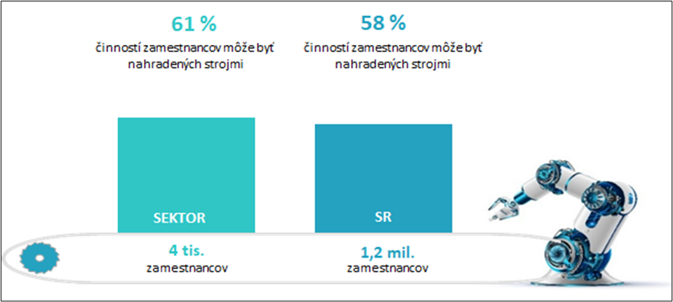 Približne 40 % zamestnancov v sektore vykonáva prácu, ktorú možno charakterizovať vysokým potenciálom automatizácie. V porovnaní s ostatnými sektormi a s celonárodným podielom (49 %), ide o pomerne nízky podiel.