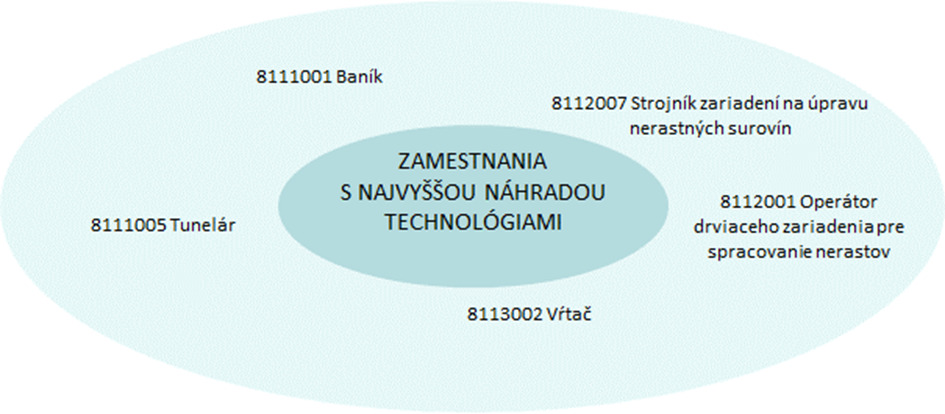 Sektor ťažba a úprava surovín, geológia patrí medzi sektory s priemerným potenciálom automatizácie. V najbližších 20tich rokoch sa očakáva, že technológiami bude možné nahradiť približne 61 % pracovných procesov, ktoré v súčasnosti vykonávajú zamestnanci. Ak to premietneme na súčasný počet zamestnancov v sektore, substituovaných by mohlo byť až 3,7 tisíc zamestnancov. Z toho budú prevažnú časť tvoriť zamestnanci na pracovných pozíciách 8111001 Baník, 8112007 Strojník zariadení na úpravu nerastných surovín a 8112001 Operátor drviaceho zariadenia pre spracovanie nerastov.