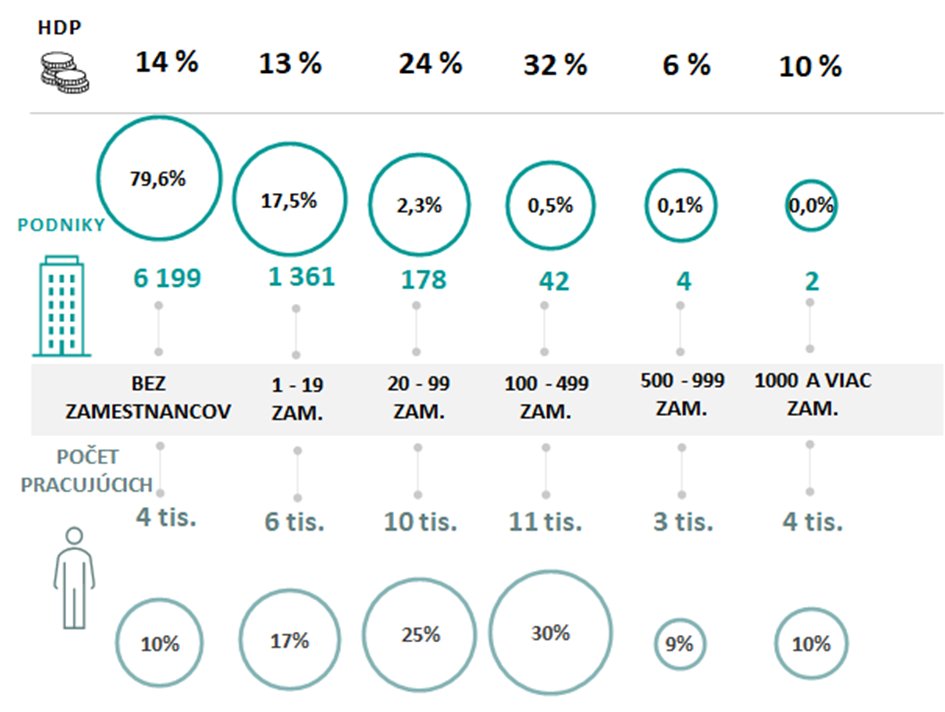 [11] Vyjadruje celkový počet pracujúcich podľa ESA2010. Rozdelenie do kategórií je realizované na základe registra organizácii a metodiky TREXIMA Bratislava.