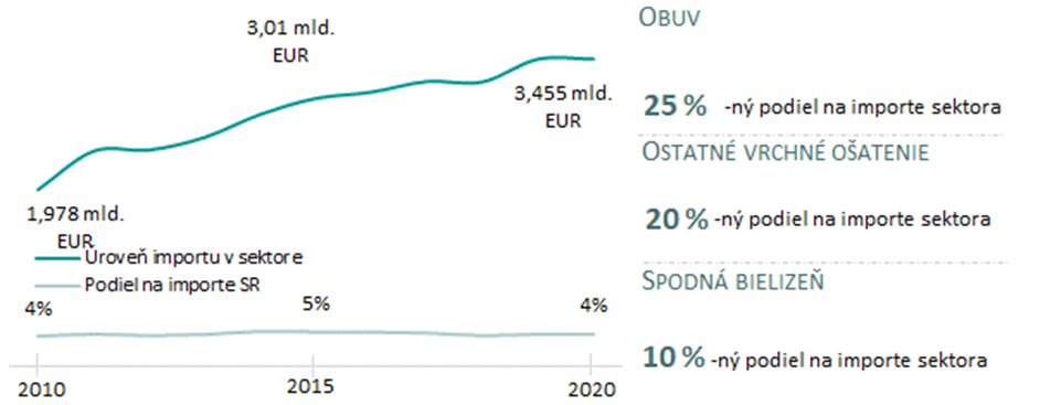 Sektor textil, odevy, obuv a spracovanie kože má pasívne saldo obchodnej bilancie, to znamená, že vyvážame o 15 % menej produktov sektora ako dovážame. Podiel vývozu sektora na celkovom vývoze zo SR predstavuje 3,7 %, pričom tento podiel sa od roku 2010 nezmenil. Dovoz produktov sektora predstavuje 4,4 % z celkového dovozu v SR a tento podiel rastie. Sektor patrí medzi 21 % sektorov s najvyšším vývozom a 29 % sektorov s najvyšším dovozom v SR.