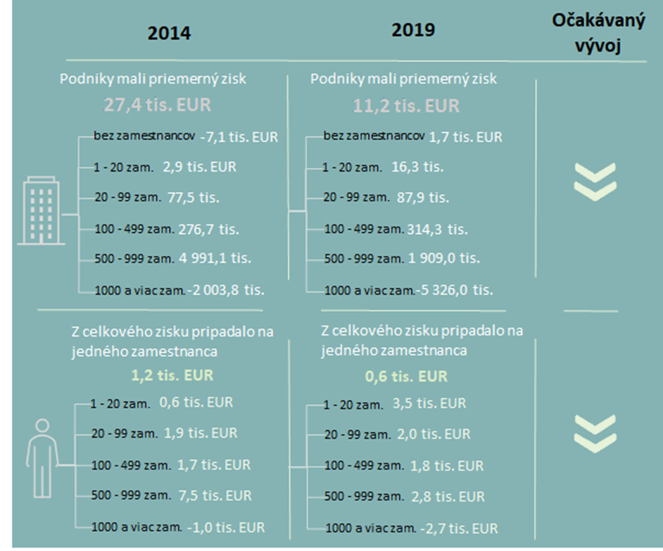 Voda, odpad a životné prostredie patrí medzi 25 % sektorov s najnižšími ziskami na podnik a 17 % sektorov s najnižšími ziskami na zamestnanca. Na jedno euro tržieb podniku v tomto sektore pripadá 0,07 EUR zisku, t. j. sa jedná o sektor s podpriemernou rentabilitou tržieb. Najziskovejšie sú stredné podniky, ktoré vyprodukujú v priemere 184,6 tis. EUR zisku ročne a na jedného zamestnanca pripadá 1,8 tis. EUR zisku. Nie všetky podniky v sektore končia v „zelených číslach“. Približne 44 % podnikov v sektore ukončilo svoje hospodárenie v roku 2019 so stratou. V roku 2015 bolo takýchto podnikov 41 % a teda ich podiel rastie. Najvyšší podiel stratových podnikov je vo veľkostnej kategórii 1000 a viac zamestnancov, kde stratu vykazuje 75 % podnikov.