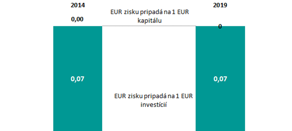 Návratnosť investícií sektora voda, odpad a životné prostredie je nižšia ako v SR, čo indikuje podpriemernú rentabilitu investičnej aktivity sektora. V sektore je tak nižšia motivácia k investíciám ako v SR, keďže ich návratnosť je dlhšia. V SR pripadá na 1 EUR investícií 2,07 EUR zisku, v sektore 0,07 EUR zisku. Návratnosť investícií v sektore rastie pomalšie ako v celej SR, čo môže byť brzdiacim faktorom investičnej aktivity v budúcnosti.