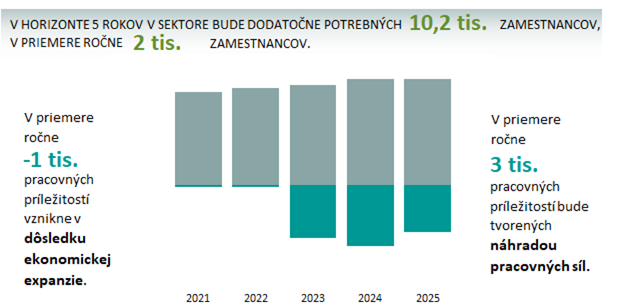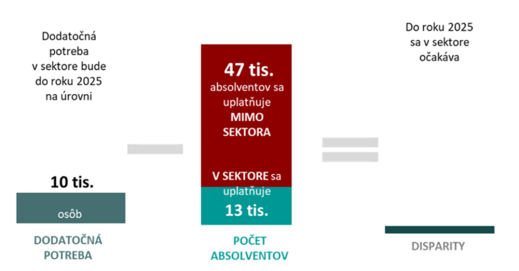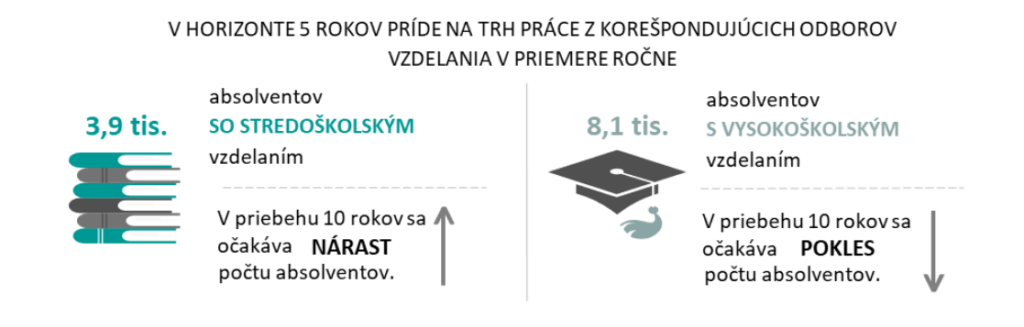 V období rokov 20212025 príde na trh práce 60,5 tisíc absolventov stredných a vysokých škôl, ktorí ukončia štúdium v niektorom z korešpondujúcich odborov vhodných pre výkon zamestnaní v tomto sektore a nebudú pokračovať v štúdiu. V dlhšom horizonte, v nasledujúcich 10 rokoch sa očakáva nárast počtu stredoškolských absolventov.