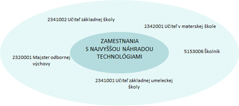 Sektor Vzdelávanie, výchova a šport patrí medzi sektory s nižším potenciálom automatizácie. V najbližších 20tich rokoch sa očakáva, že technológiami bude možné nahradiť približne 6 % pracovných procesov1, ktoré v súčasnosti vykonávajú zamestnanci. Ak to premietneme na súčasný počet zamestnancov v sektore, substituovaných by mohlo byť až 8,2 tisíc zamestnancov z celkového počtu 224 tisíc pracujúcich v sektore. Z toho budú prevažnú časť tvoriť zamestnanci na pracovných pozíciách Učiteľ základnej školy, Učiteľ v materskej škole a Školník.